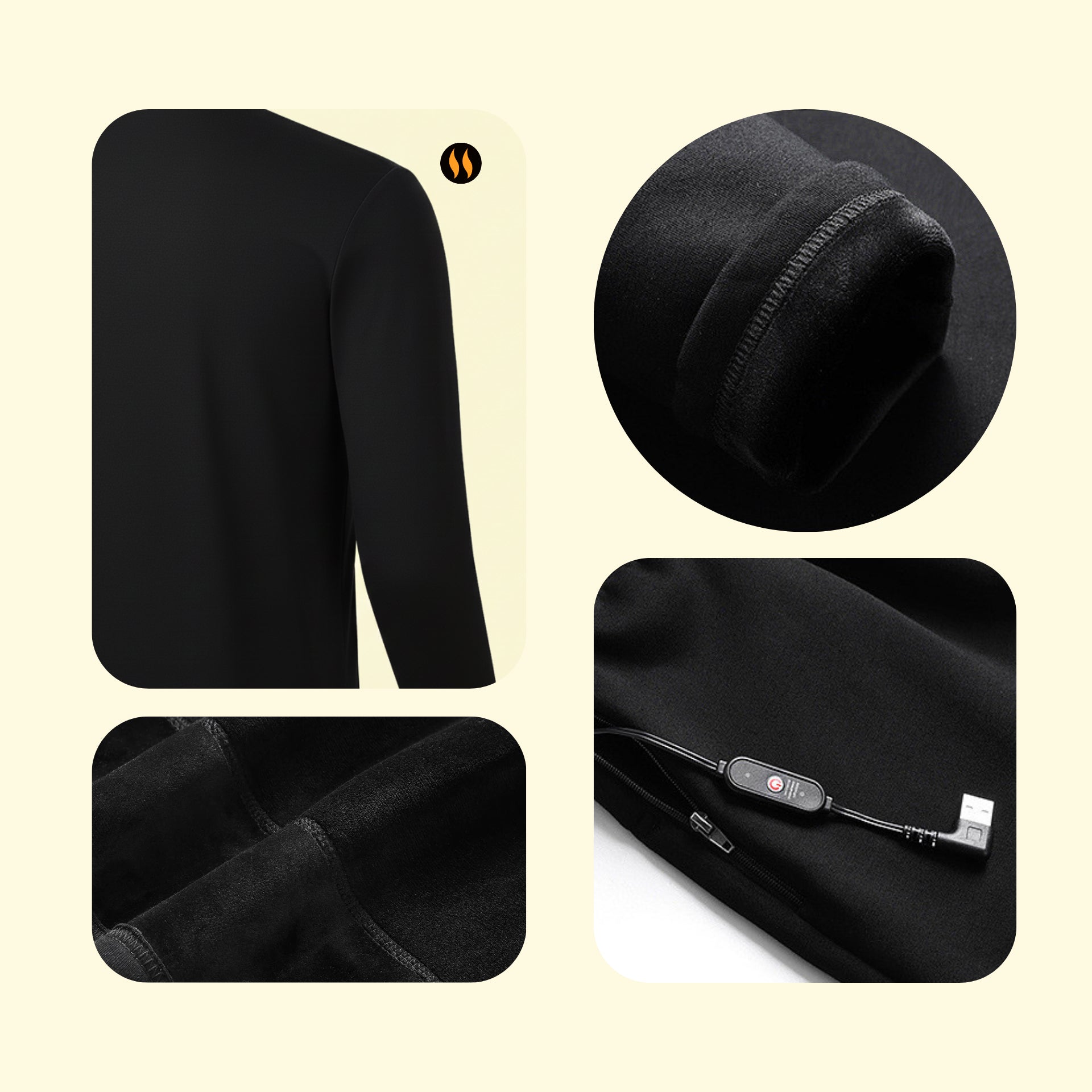 The HeeetUp™ Heated Base Layers Set provides full-body warmth and comfort for cold days and outdoor activities. Made from soft polyester in a stylish leisure design, it targets key areas like the back, waist, abdomen, and knees to ensure consistent heat where you need it most. Easy to charge and wear, these base layers are perfect for layering under your regular clothing to stay warm without bulk. Available in black and gray, they combine functionality, comfort, and style for everyday use or sports.