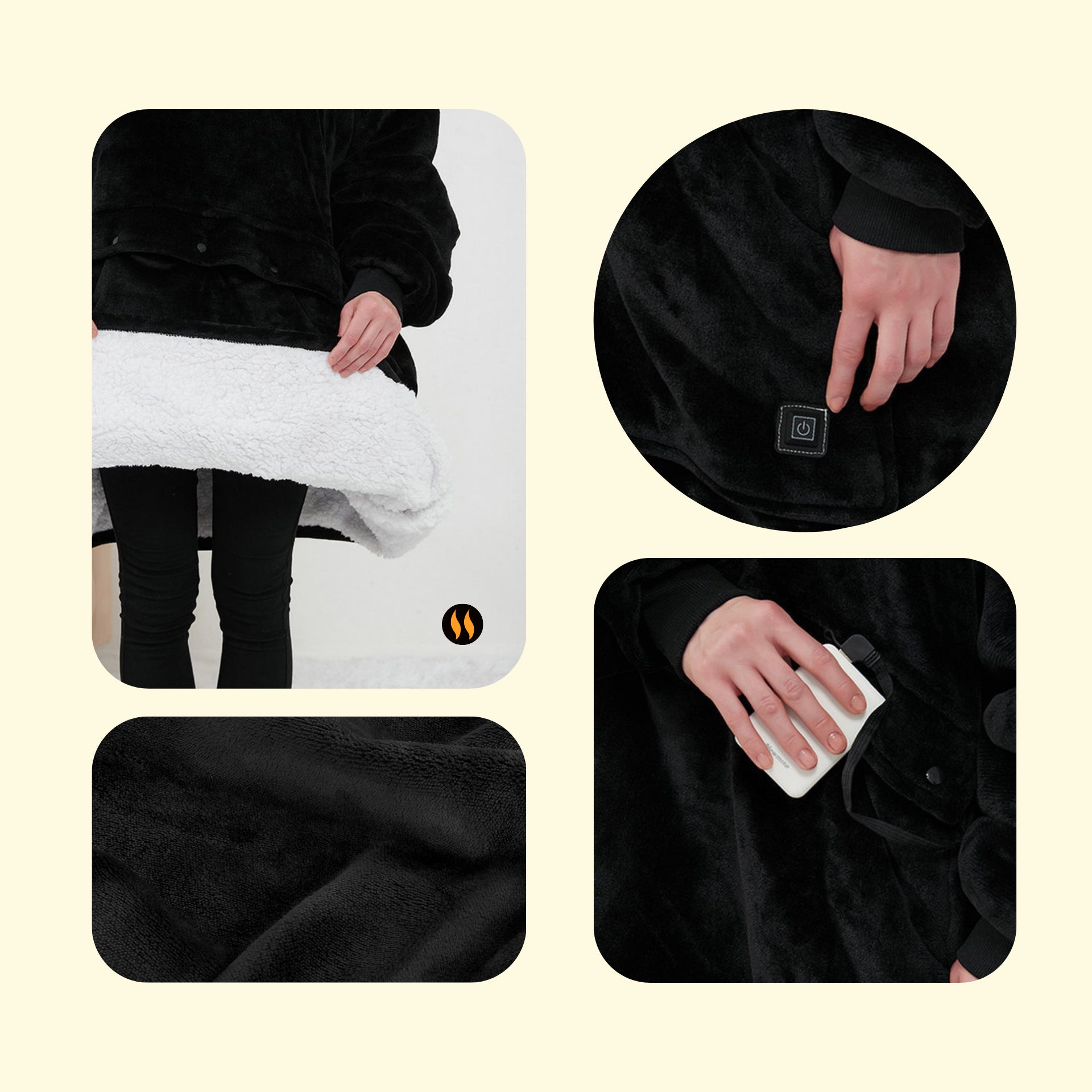 The HeeetUp™ Heated Oversized Indoor Hoodie is the ultimate cozy companion for cold days and nights. Made from soft flannel fabric and fluffy sherpa, it delivers long-lasting warmth across a large area, keeping your back and entire body comfortably heated. The USB-powered hoodie features three adjustable temperature settings and a massive oversized design, making it perfect for lounging, working, or relaxing at home. Please note: rechargeable devices are not included.