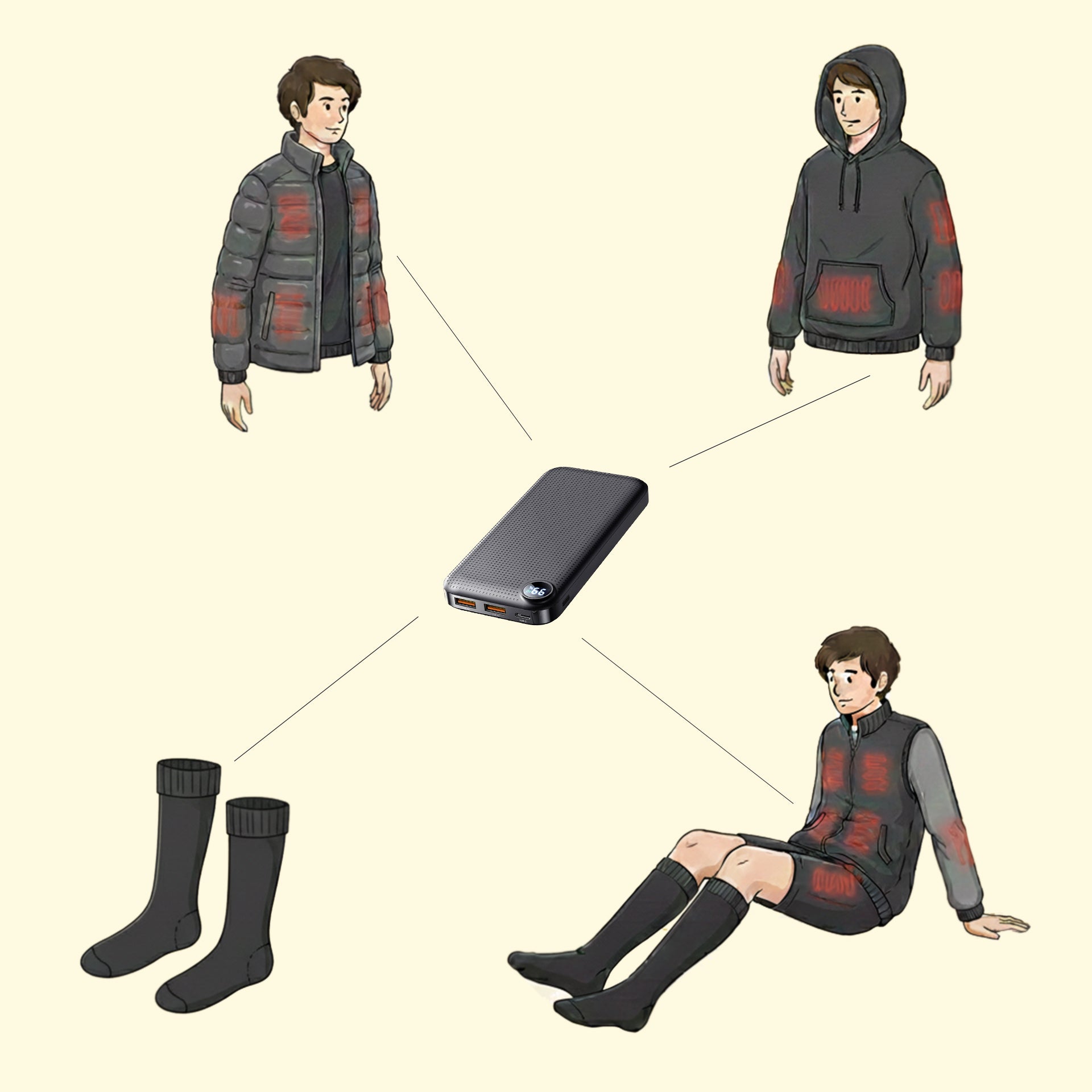 Enjoy up to 10 hours of steady heat with any compatible USB power bank, giving you comfort without piling on heavy layers.